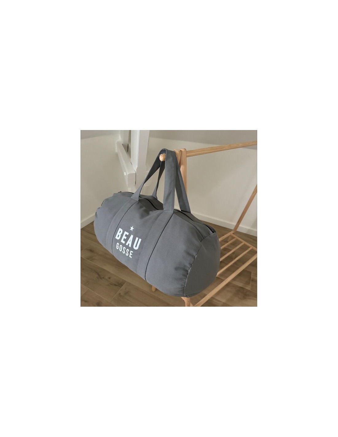 Adorable sac polochon à offrir à un "Beau Gosse" dans son coloris Grison. Le sac idéal pour partir en vacances, en week-end, au sport...
