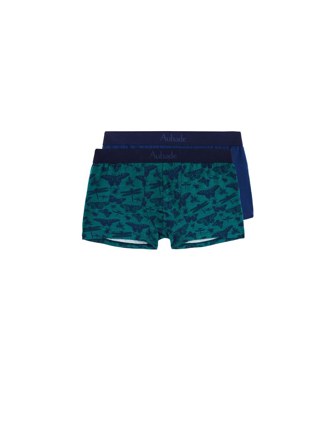 • Coloris: Un boxer vert et bleu avec motif et un boxer uni bleu marine