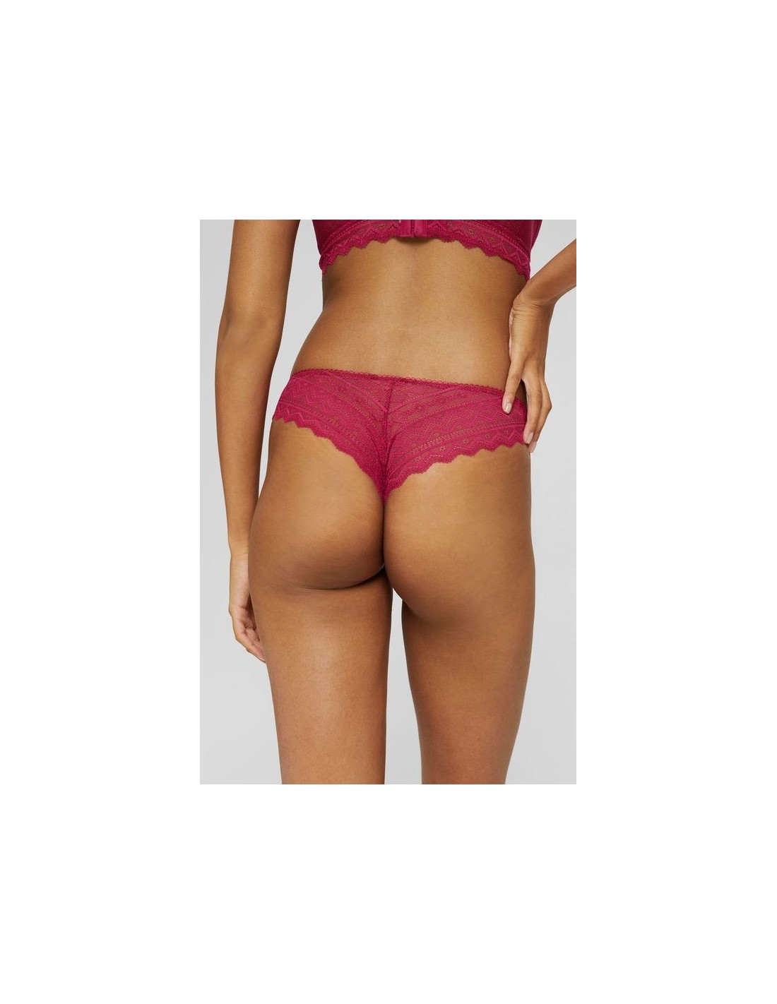 La fine dentelle graphique confère un charme bohème à ce slip brésilien à teneur en matières recyclées.