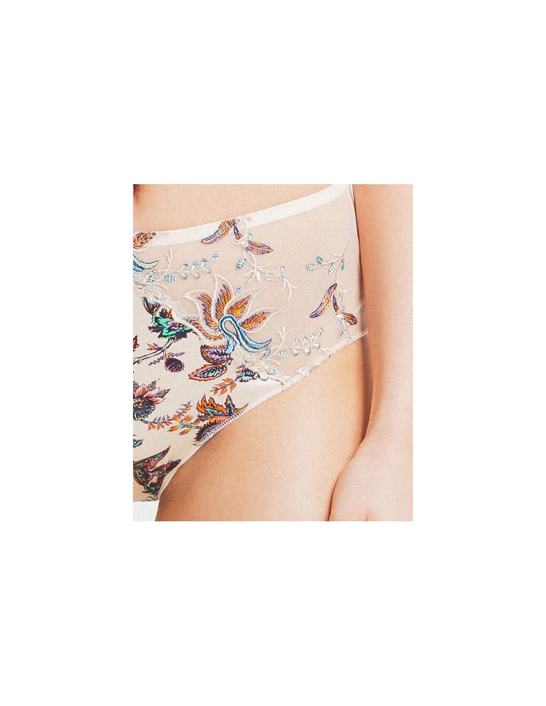 La culotte haute Louisa Bracq de la collection Bybliss fait référence à la collection personnelle de la créatrice de joaillerie Victoire Castellane intitulée « Fleurs d’excès »