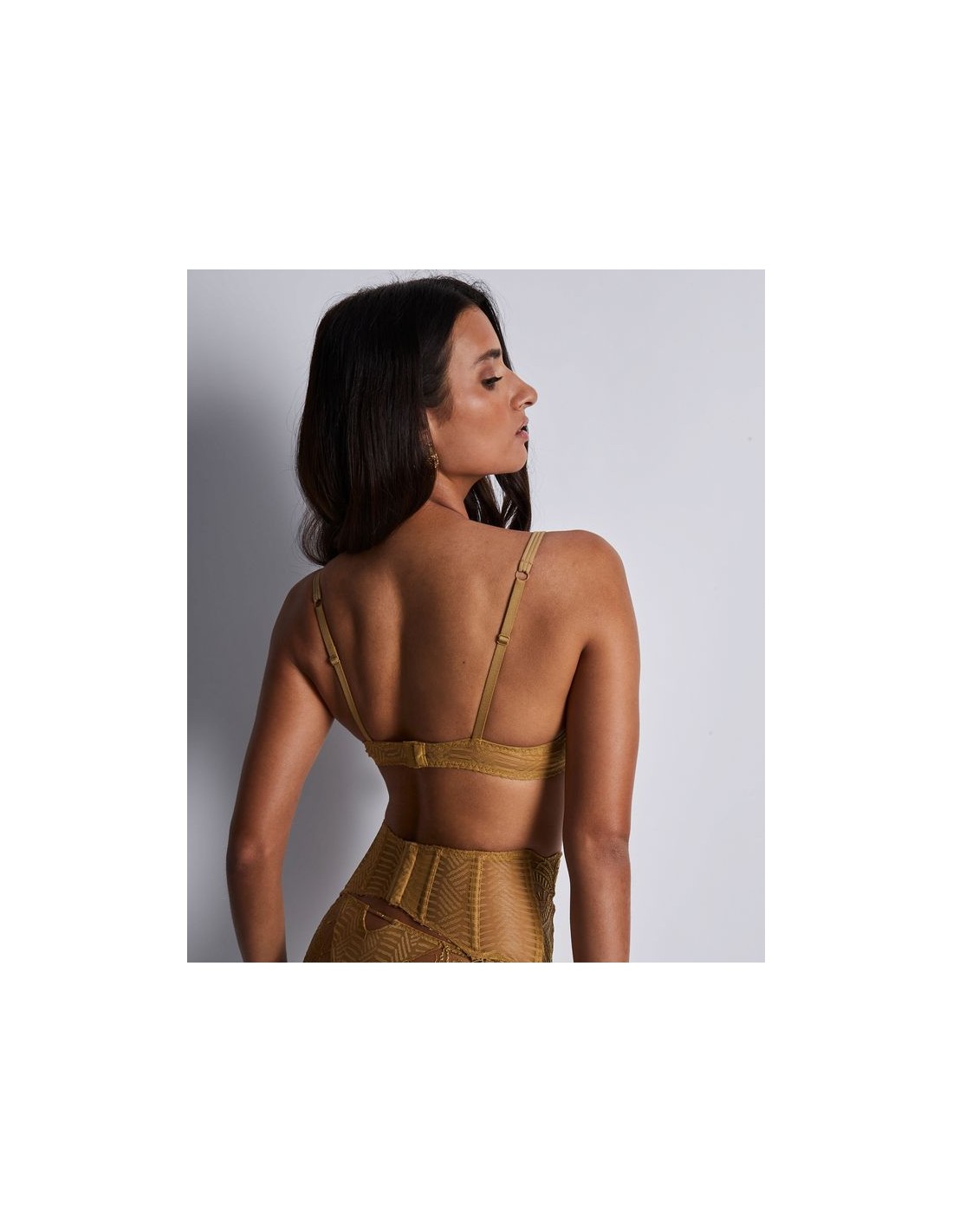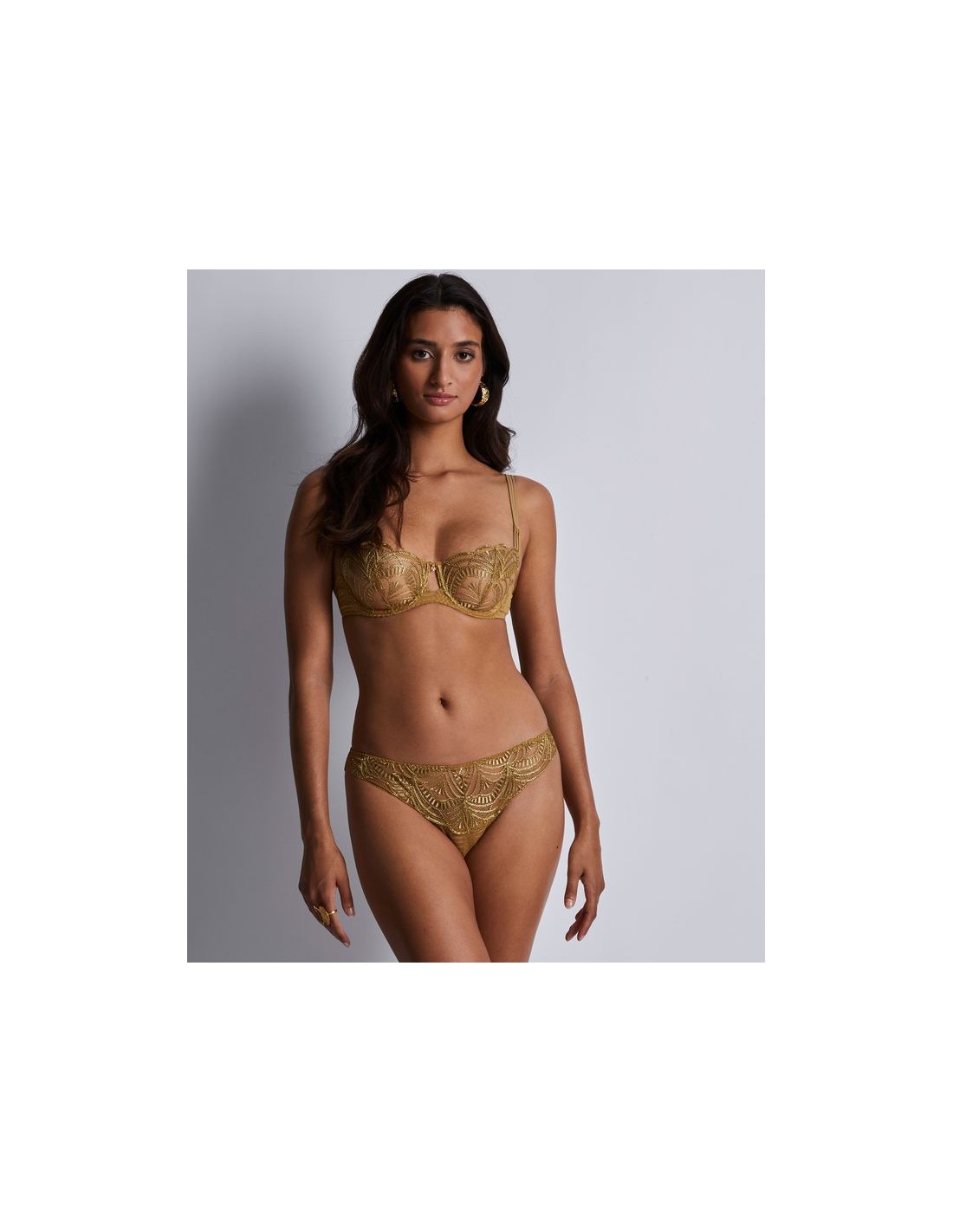 • Tubes dorés qui habillent le triple départ des bretelles pour souligner le look bohème