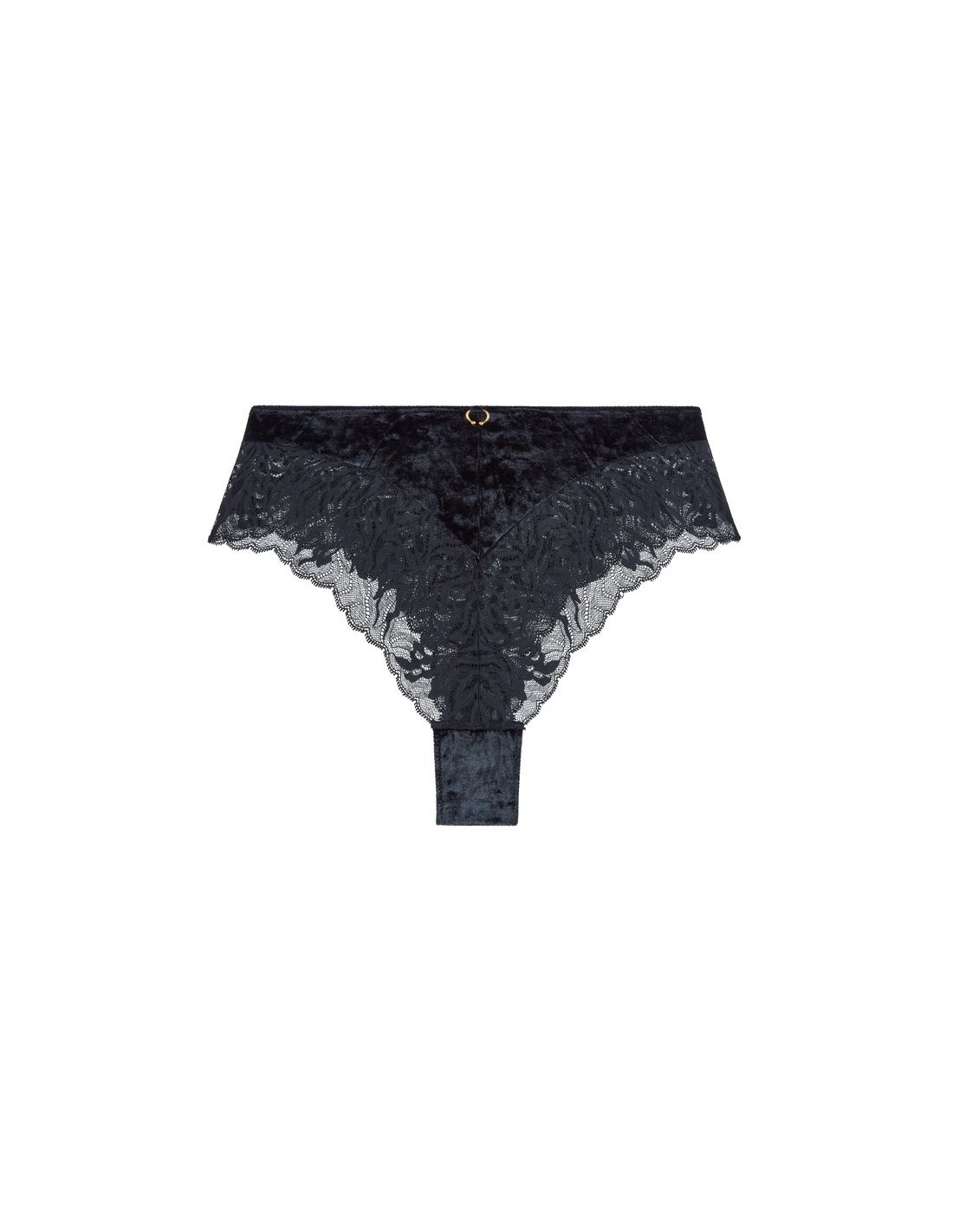 Remontant jusqu’au nombril pour une silhouette naturellement galbée, la culotte très haute The night before associe une dentelle au dessin animalier sexy à un velours moiré doux et confortable. Dans le dos, elle se pare d’une ouverture soulignée par un bijou martelé moderne qui illumine sensuellement le creux des reins.